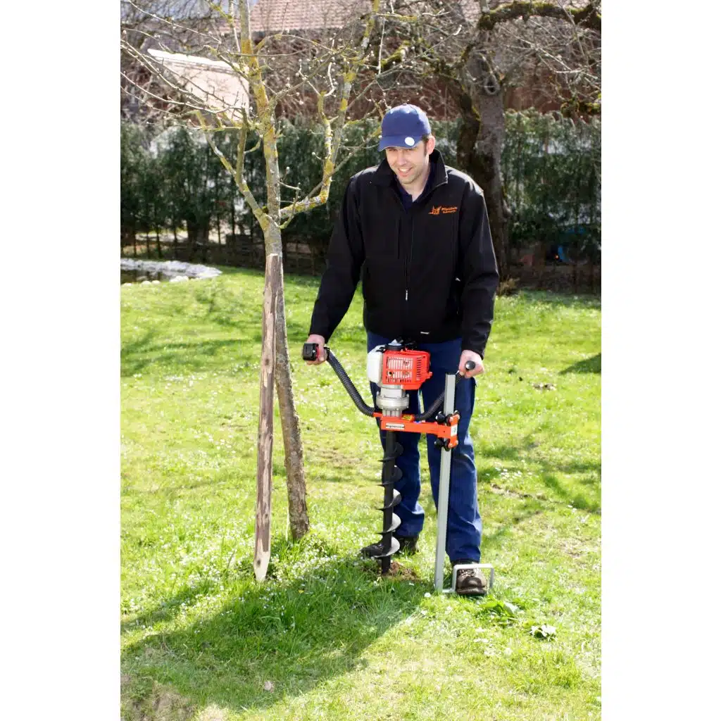 - La puissance: privilégier les tarières thermiques très puissantes. La puissance d’une tarière thermique lui confère rapidité, efficacité et surtout polyvalence dans sa fonction de forer. Avec une tarière très puissante (2000 watt), nul souci à vous faire, peu importe la nature du sol et le type de trou à creuser. Si vous voulez connaitre la tarière thermique la plus puissante du marché, rendez-vous ici.